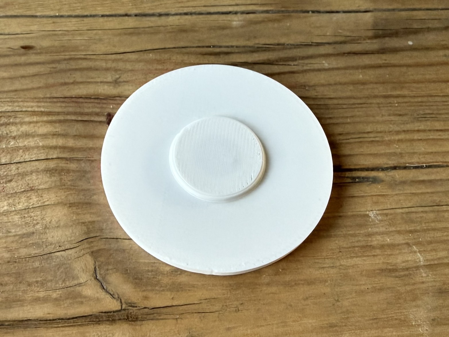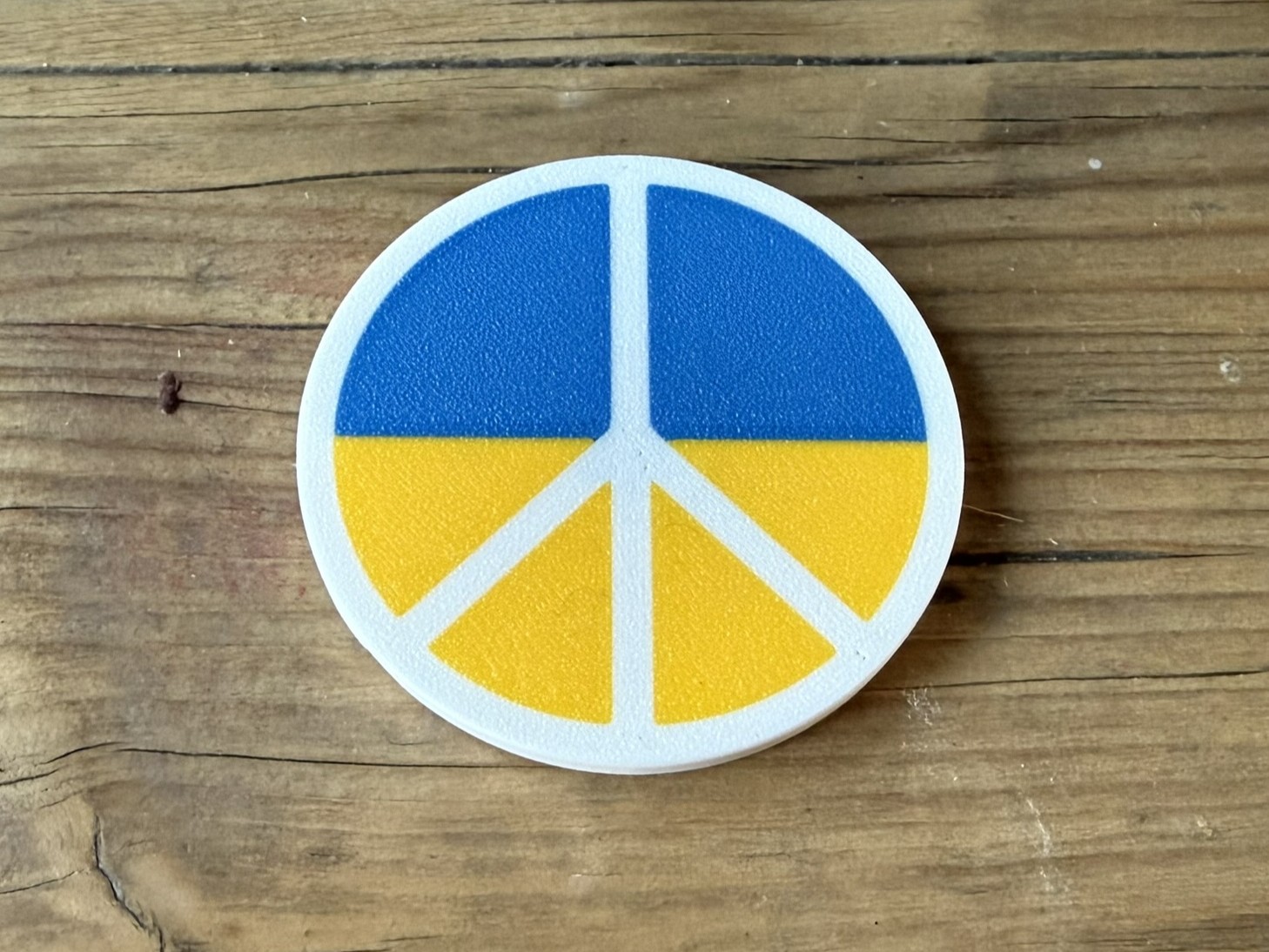 In den Kühlschrankmagnet Frieden für Ukraine ist ein Neodym Magnet (Durchmesser 10 mm, Höhe 3 mm) eindruckt, so dass er unlösbar mit dem Grundkörper verbunden ist.