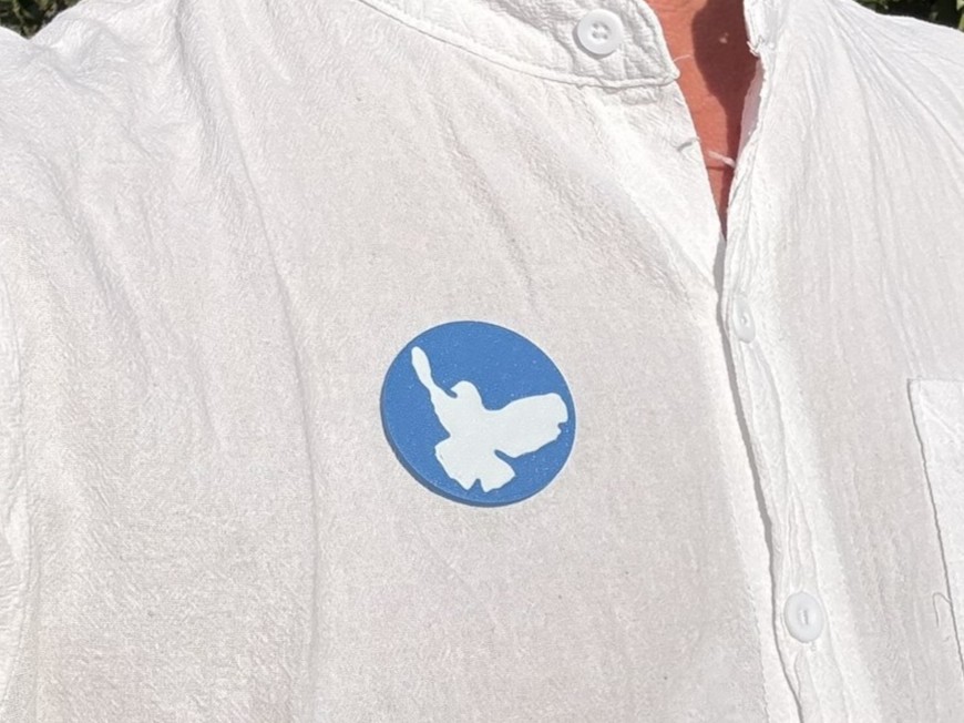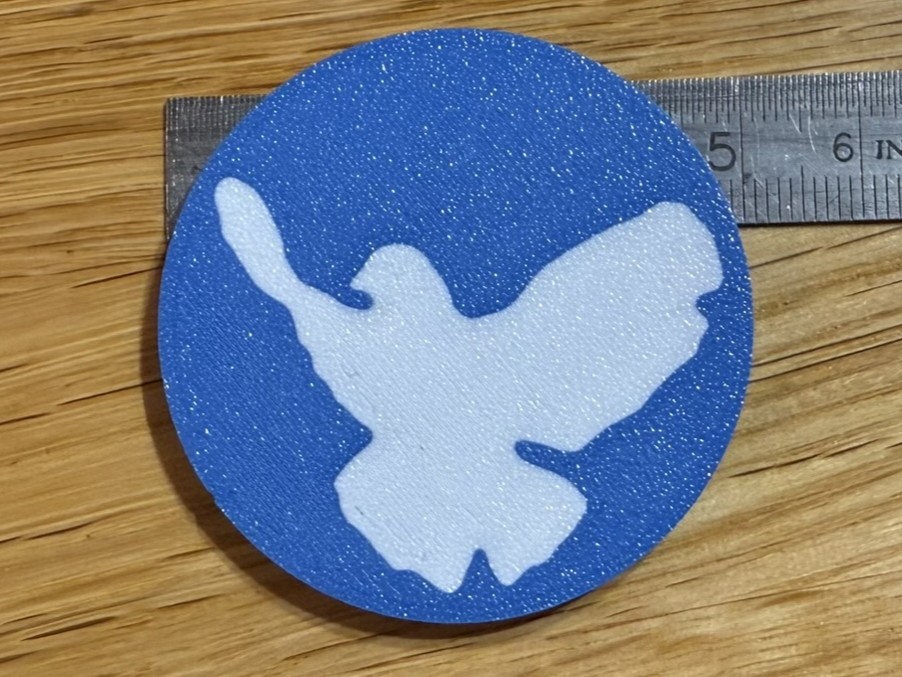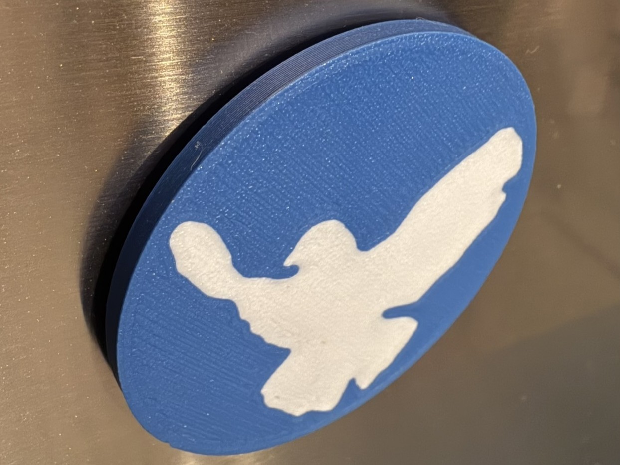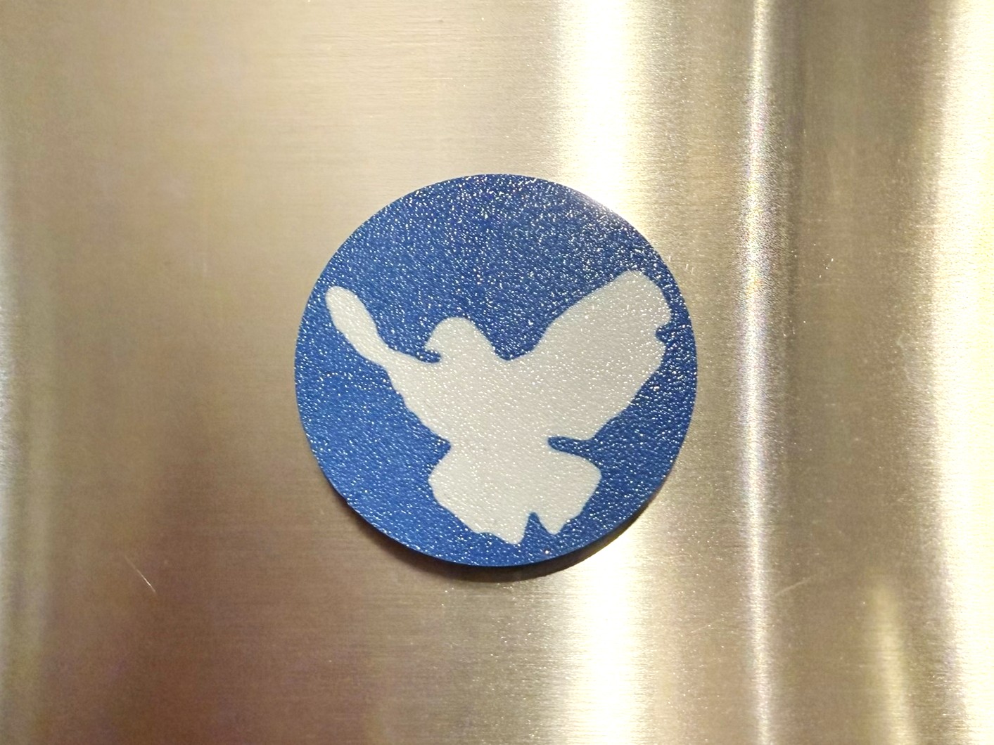 Der Kühlschrankmagnet Friedenstaube ist so gestaltet, dass auf der Rückseite der eingedruckte Magnet 1,5 mm herausragt. Dadurch ist er leicht zu lösen, da er kippbar ist und man nicht lange mit den Fingern frickeln muss.
